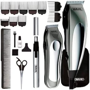 21 peças: máquina de corte, aparador de pelos, aparador de pelos de orelha e nariz, 8 pentes de altura, pentes de orelha esquerda e direita, pente para bigode, estojo para armazenagem, tesoura, pincel de limpeza, óleo lubrificante e protetor de lâmina.