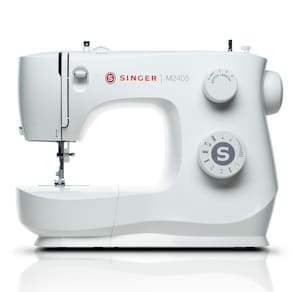 Máquina de costura mecânica Singer M2405 com 8 pontos essenciais e decorativos, ajuste de largura e comprimento, braço livre, iluminação LED e alça para transporte. Ideal para costura, reparos, customização, artesanato e decoração.Funções