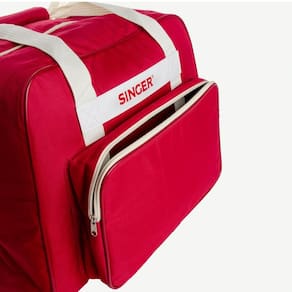 A máquina também conta com ajuste de largura e comprimento dos pontos, permitindo mais personalização nos acabamentos. Com alça para transporte, ela é fácil de carregar e perfeita para quem precisa de mobilidade.