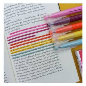 Este conjunto inclui 5 marcadores em cores vibrantes que destacam seus textos e contam com deliciosos aromas que tornam a experiência única e agradável. Com design ergonômico garante conforto durante o uso, e a ponta chanfrada permite traços precisos em diferentes espessuras.