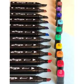 A Bismark Marker DUAL é uma linha de marcadores profissionais, à base de álcool, indicados para o uso artístico e profissional. São permanentes e muito versáteis para uso em papel, cartões, plástico, cerâmica, madeira e metal. Possuem duas pontas, uma chanfrada e uma média arredondada. O que possibilita o uso para contornos e preenchimentos em ilustrações artísticas ou profissionais. Essa linha possui 48 cores para você soltar sua imaginação