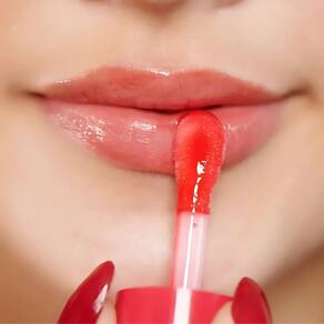 Lip Oil Juice: Aplique o Lip Oil Juice Morango diretamente sobre os lábios, deslizando o aplicador para uma cobertura uniforme e um brilho instantâneo.