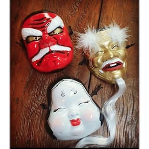 OkinaA máscara Okina foi usada para o teatro Noh. Foi o mais utilizado no primeiro ato e tem um valor histórico incalculável.Significa, no palco, sabedoria e experiência. Muitas vezes ele tinha uma dualidade entre um velho sábio e uma atitude muito travessa como um velho doido e brincalhão.Ótima para deixar de enfeite em ambiente externo e interno, trazendo assim um ar mais oriental para o local.Confeccionado em Resina e pintado a mãoMedidas 18 cm x 14 cmMÁSCARA DECORATIVA OKAMEOkame, também conhecida por Otafuku é uma máscara feminina com o rosto redondo, as bochechas rosadas e com um grande sorriso, que simboliza a prosperidade.Ela é uma representação da Deusa da Alegria, no japão quando algum membro da família morre ou algo de ruim acontece financeiramente em uma família, é comum colocarem de decoração uma dessas máscaras ou as duas para trazer felicidade e fortuna.Medidas 17 cm x 15 cmConfeccionada em resina e pintada a mão.Tengu,São criaturas fantásticas do folclore japonês, uma espécie de goblin cujas lendas possuem traços tanto da religião budista quanto xintoísta.Eles habitam florestas e montanhas.Acreditavam -se que possuíam vários poderes sobrenaturais, entre eles a capacidade de mudar de forma, ventriloquíssimo, teletransporte e telecinese e a habilidade singular de penetrar no sonho dos mortais.Confeccionado em Resina e pintado a mãoMedidas 18 cm x 14 cm Marca: Ikinnayo