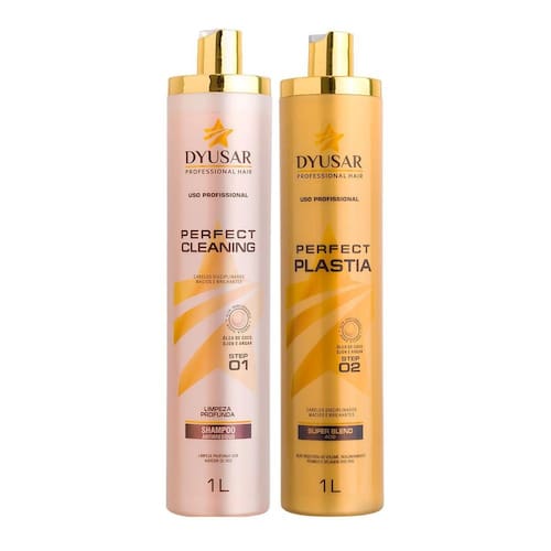 A escova Progressiva Dyusar Perfect Plastia é um realinhamento capilar sem formol que alisa 100% todos os tipos de cabelos ao mesmo tempo em que trata e hidrata, protegendo os fios e repondo a massa capilar para maciez, brilho e efeito liso duradouro. Sua fórmula com proteínas de queratina e aminoácidos foi desenvolvida a base de 6 ácidos principais, Hialurônico, Lático, Glicólico, Salicílico, Lipoico e Ascórbico que juntos agem profundamente até a cutícula dos fios promovendo a reestruturação e disciplina da fibra para cabelos mais resistentes, maleáveis e totalmente lisos.