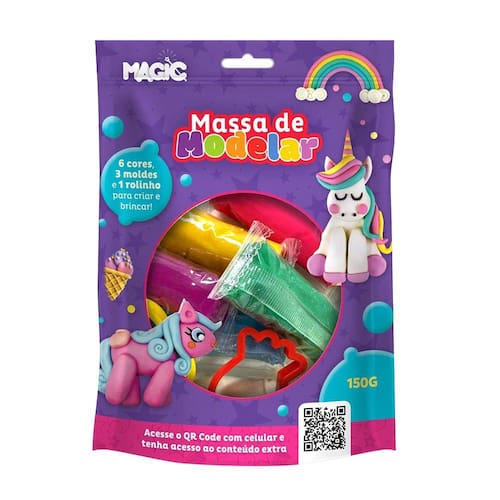 Você está pronto para levar a diversão das massinhas a um nível mágico? Apresentamos o incrível Kit Massa de Modelar EVA Magic Kids Unicórnio 6 Cores! Este conjunto é simplesmente perfeito para todas as crianças que adoram mergulhar em aventuras criativas enquanto brincam de massinha.Imagine só, um pacote repleto de cores vibrantes esperando para serem moldadas em formas fantásticas. Com seis cores diferentes à sua disposição, as possibilidades são infinitas! Deixe a imaginação correr solta enquanto cria seus próprios unicórnios mágicos, castelos encantados, ou até mesmo animais misteriosos.Mas não para por aí! Este kit também inclui três moldes exclusivos, projetados para ajudar a dar vida às suas criações. Deixe-se surpreender com a facilidade de criar figuras perfeitamente detalhadas em um piscar de olhos. E para garantir que cada obra-prima seja ainda mais especial, um rolinho está incluso para aprimorar os detalhes e deixar tudo ainda mais incrível.Mais do que apenas uma atividade divertida, brincar de massinha é uma maneira maravilhosa de estimular o desenvolvimento infantil. Enquanto as crianças mergulham em suas criações, estão também aprimorando habilidades essenciais. Desde a concentração até a expressão criativa, passando pela coordenação motora, cada apertar e moldar é uma oportunidade de crescimento. Moldar a massinha não só libera pensamentos e emoções, como também ajuda as crianças a relaxarem e se expressarem de maneira única.Os brinquedos são mais do que simples objetos; eles se tornam companheiros de aventura e aprendizado. Então, por que não presentear os pequenos com algo que não apenas os diverte, mas também os inspira a explorar e criar?. Estimule a criatividade, promova o desenvolvimento e faça parte de momentos mágicos que serão lembrados para sempre.