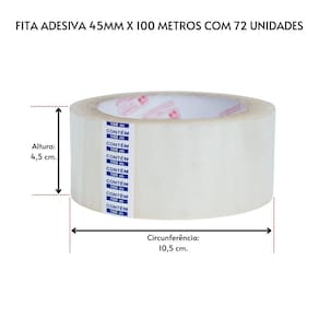 Contém: 72 unidades Dimensões: 45MM x 100 metros Material: Polipropileno Micras: 31 a 33