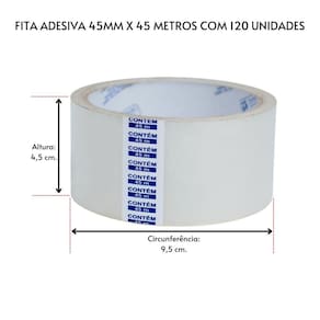 Contém: 120 unidades Dimensões: 45MM x 45 metros Material: Polipropileno Micras: 31 a 33