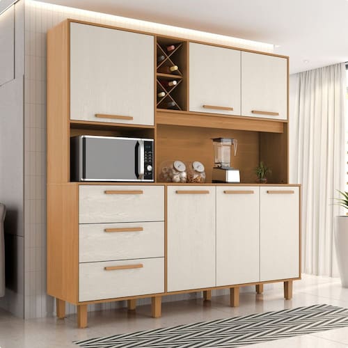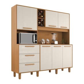 Kit Max 6 Portas 3 Gavetas com Nicho e Adega. Organização, praticidade e melhor aproveitamento de espaço em um único produto. O Kit Max é ideal para compor cozinhas funcionais, oferecendo excelente divisão interna e layout inteligente. Conta com 6 portas que facilitam a organização de utensílios e mantimentos, além de 3 gavetas com corrediças telescópicas, que proporcionam abertura suave e maior durabilidade. Possui nicho para micro-ondas e adega integrada, agregando praticidade ao dia a dia. Os pés com regulagem de altura permitem melhor nivelamento do móvel, adaptando-se a diferentes tipos de piso. Uma solução completa para quem busca funcionalidade, organização e ótimo custo-benefício. Acabamento da Prateleira: Pintura Texturizada UV Escala de Brilho da Prateleira: Fosco Acabamento da Gaveta: Pintura Texturizada UV Escala de Brilho da Gaveta: Fosco Material do Puxador da Gaveta: MDF Acabamento da Porta: Pintura Texturizada UV Escala de Brilho da Porta: Fosco Material do Puxador da Porta: MDF Acompanha Rodapé Decorativo: Não Acompanha Tampo: Sim Ambiente Principal: Cozinha Balcão Suporta Pia: Não codigo_ean: 7900288348609 Complexidade da Montagem: Alta: deve ser montado por um montador especializado Cor: Cinamomo / Areia Cor do Produto: Cinamomo / Areia Cor Interna: Cinamomo Escala de Brilho: Fosco Espessura do Material da Estrutura: 15 mm Gaveta com Chave: Não Itens Inclusos: 1-Kit Max (1,81M) + Manual de Montagem + Kit de Ferragens Linha ou Coleção: Max Manual de Montagem e Instalação: https://product-hub-prd.madeiramadeira.com.br/419037918/documents/e978380e-c3c8-4c65-b003-bf6e551533943419381573817721317595096.pdf Marca: Zanzini Material da Corrediça: Metálica Material da Dobradiça/Corrediça da Porta: Metálica Material da Gaveta: MDP Material da Porta: MDP Material da Prateleira: MDP Material do Fundo: MDP Material do Tampo: MDP Material dos Pés: Plástico modular: Não Montagem Flex: Não Necessita Montagem: Sim O Balcão Acompanha Pia: Não Origem do Produto: Nacional Pés Reguláveis: Sim Peso: 97,5 kg Peso Máximo por Gaveta: 3 kg Peso Máximo por Prateleira: 8 kg Possui Pés: 08 Possui Portas: Sim Possui Prateleiras: Sim Possui recorte para Cooktop: Não Possui Rodízio: Não Possui Vidro: Não Produto Montado: Sim Recomendações de Uso, Manutenção e Limpeza: Limpe com pano macio seco; não use produtos abrasivos, químicos ou álcool; evite impactos, arranhões, exposição direta à luz solar e umidade. Sapatas Niveladoras: Não Sistema de Montagem: Parafusos auto atarraxantes, cola, cavilhas, pregos, minifix Suporta Até (kg): 76 kg Tipo de Corrediça da Gaveta: Metálica Telescópica Tipo de Dobradiça da Porta: Simples Tipo de Puxador da Gaveta: Externo Tipo de Puxador da Porta: Externo