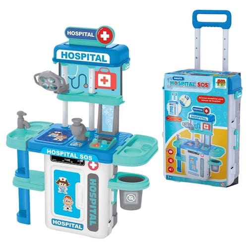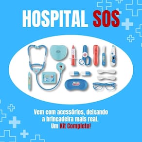 Kit Médico Infantil Completo Maleta SOS Brinquedo Educativo Com o Hospital SOS, a imaginação vira remédio e a brincadeira vira cura Transforme a brincadeira em um momento de aprendizado e imaginação com o Kit Médico Infantil Um brinquedo educativo completo que simula uma estação médica real, repleto de funcionalidades e acessórios para um atendimento cheio de diversão. A maleta se transforma em uma bancada hospitalar completa Conta com diversos recursos: torneira funcional que sai água, luz cirúrgica com ângulo ajustável, monitor cardíaco com som e luz e até giroscópio com botões giratórios. Além disso, acompanha um kit completo com estetoscópio, termômetro, seringa, remédios e outros acessórios para que os pequenos possam brincar de cuidar com realismo e criatividade. Ideal para estimular a empatia, a imaginação e o desenvolvimento cognitivo, comunicação e habilidades motoras finas. Brincadeira e aprendizado juntos