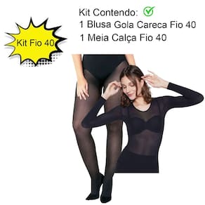 Kit Meia Calça Fio 40 + Blusa Gola Careca Segunda Pele 38/44. Blusa confeccionada com malha finíssima para ser usada em baixo da roupa ou com sobreposições, permitindo versatilidade no visual. Modelagem em manga longa, possui transparência, elasticidade e caimento justo. Qualidade Lupo. Gola careca Fio 40 - referência 0800-001. Produto em tamanho único que atende numeração: 38 a 44. Cor disponível: Preto. Composição: 98% Poliamida, 2% Elastano. Produto delicado. Acompanha também 1 Meia calça Fio 40 na cor preta, cintura com elastano, tamanho único que atende até a numeração 46. Composição: 90% acrílico, 10% Elastano. Kit completo para você se manter aquecida e elegante em qualquer ocasião. Contém: 1 Blusa Gola Careca Manga Longa Fio 40 Lupo Preta + 1 Meia Calça Fio 40 Preta = 2 Produtos. Fotos ilustrativas e reais do produto.