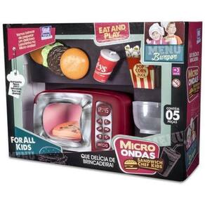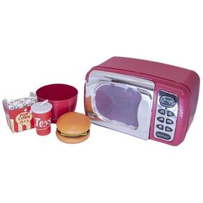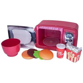 - 1 microondas 20 cm de comprimento x 10,5 largura x 12 cm altura não emite som e luz Com 1 forminha, 1 copinho de refrigerante, 1 balde de pipoca, 1 hambúrguer que se desmonta