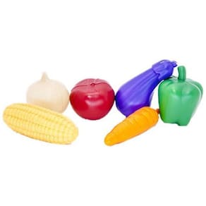 O kit vem com microondas, comidinhas, legumes e batedeira