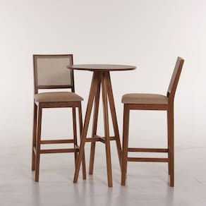 Os bistrôs normalmente são pequenos restaurantes gerenciados por uma família ou pequeno grupo de pessoas e que atua de forma bem próxima dos clientes, sabendo como são seus gostos e oferecendo uma comida caseira, que ainda mantém aquele requinte de uma refeição diferenciada das que temos no dia a dia. Para isso, o kit bistrô Sila tem que trazer justamente essa sensação, para melhorar ainda mais a experiência das pessoas, com conforto, aproximação e qualidade. Altura dos Pés: 100 cm Ambiente Principal: Sala de Jantar Bandeja: Não Possui Complexidade da Montagem: Baixa: pode ser montado por uma pessoa sozinha Cor: Mel Cor do Produto: Mel Escala de Brilho: Fosco Itens Inclusos: 1 BISTRO + 2 BANQUETAS ALTA Manual de Montagem e Instalação: https://product-hub-prd.madeiramadeira.com.br/909044/documents/7d25d7d6-1f14-4364-b4da-0b0cf55493491964330550717159502293623.pdf Material dos Pés: Madeira Maciça Material Principal: Madeira Maciça Necessita Montagem: Sim Origem do Produto: Nacional Peso: 45 kg Porta Rolhas/Tampinhas: Não Porta Taças: Não Porta-garrafas: Não Possui Adega: Não Possui Espelho: Não Possui Gavetas: Não Possui iluminação: Não Possui Pés: 04 Possui Portas: Não Possui Prateleiras: Não Possui Rodízio: Não Possui Vidro: Não Recomendações de Uso, Manutenção e Limpeza: PANO LIMPO UMEDECIDO COM AGUA Sapatas Niveladoras: Não Sistema de Montagem: PARAFUSOS, CAVILHAS,CHAPINHA Suporta Até (kg): 50 kg Tipo de Madeira Maciça: Tauari Tipo de Madeira Maciça dos Pés: Madeira Maciça