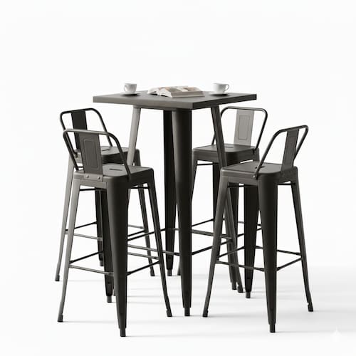 Este conjunto Mesa Bistrô Iron Tolix com 4 banquetas é a solução perfeita para quem deseja unir estilo industrial, funcionalidade e durabilidade em um único produto. Fabricado em aço carbono com pintura eletrostática preta fosca, o conjunto oferece alta resistência e fácil manutenção, sendo ideal para áreas gourmet, cozinhas, bares, varandas e espaços comerciais. A mesa possui tampo de 60 x 60 cm e altura de 105 cm, proporcionando o tamanho ideal para refeições rápidas ou momentos de convívio. As quatro banquetas que acompanham o conjunto foram projetadas para garantir conforto e estabilidade, com altura de 76 cm até o assento e 97,5 cm até o encosto. O assento quadrado de 30 cm e o encosto de 36 cm oferecem apoio adequado, enquanto a base de 42 cm garante firmeza durante o uso. Cada banqueta suporta até 120 kg e pesa aproximadamente 5 kg, facilitando o manuseio. Recomendado para ambientes internos e externos secos. A montagem é simples e acompanha manual e kit completo. Garantia de 90 dias. As imagens são ilustrativas e podem apresentar variação de tonalidade. O anúncio refere-se apenas ao kit bistrô, não incluindo itens decorativos.