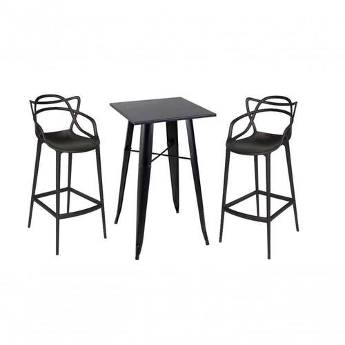 Kit Mesa Bistrô Tolix Com 2 Banquetas Altas Allegra Preto A Mesa Alta Iron Tolix é a peça perfeita para adicionar um toque de estilo e sofisticação ao seu bar ou espaço de entretenimento, esta mesa combina durabilidade com um design dimensões de 60 x 60 cm e uma altura de 108 cm, esta mesa quadrada é compacta, mas ainda assim oferece espaço suficiente para acomodar até quatro pessoas confortavelmente. A Mesa Alta Iron Tolix requer montagem, mas não se preocupe, o processo é simples e direto. Uma vez montada, a mesa é estável e resistente, pronta para ser o centro das atenções em qualquer você está procurando uma peça de mobiliário que combine funcionalidade com estilo, a Mesa Alta Iron Tolix é a escolha perfeita. Mesa Alta Modelo: Tolix Material Da Estrutura: Aço CarbonoMaterial Do Tampo: Aço Carbono Largura Do Tampo: 60 Cm Comnto Do Tampo: 60 Cm Altura: 108 Cm Distância Entre Os Pés: 60 Cm Garantia: 3 Banqueta Allegra Master Com design moderno a banqueta allegra é ideal para decorar qualquer ambiente. A banqueta possui encosto vazado e descanso para os pés, prática e confortável. Ideal para deixar a sua bancada de alimentação ou bar mais moderna. Garantia de 3 meses por de fabricaçã Total: 109 cmAltura do Chão Até o Assento: 76 cmProfundidade Interna do Assento: 40 cmLargura Interna do Assento: 36 cmPeso Máx. Recomendado: 120 kgsPeso unitário: 4,6 kgsNão GiratóriaNão DobrávelEmpilhavel Indicações de Uso:- Não utilizar produtos químicos e abrasivos para limpeza- Limpar com pano umedecido e sabão neutro para melhor conservação- Deve ser evitada exposição dos produtos ao sol pois podem apresentar pequenas mudanças em sua coloração.Observações importantes:- Pode haver alguma diferença de tonalidade entre a imagem e o produto real, por conta do tratamento de imagens e a calibração de cores do seu monitor.- Ao receber a mercadoria, o cliente deve verificar as condições da embalagem, caso haja alguma não assine o de .