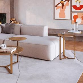 Kit Mesa Centro E Lateral Chanfrada Pes Metal Dourado Hanover Artesano Hanover Dourado