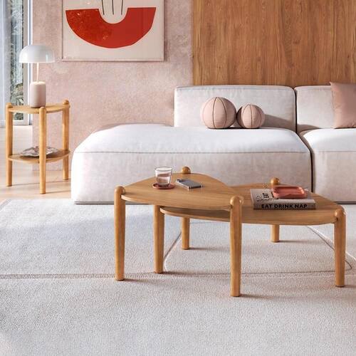 Kit Mesa De Centro E Lateral Organica Pes Madeira Hanover Artesano Hanover