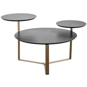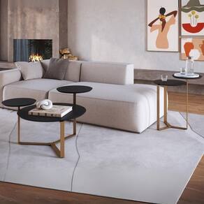 Kit Mesa De Centro E Mesa Lateral Para Sala Pés Metálicos Dari A03 Nero Dourado - Lyam Decor