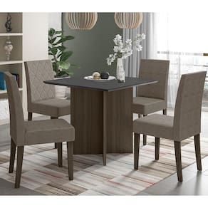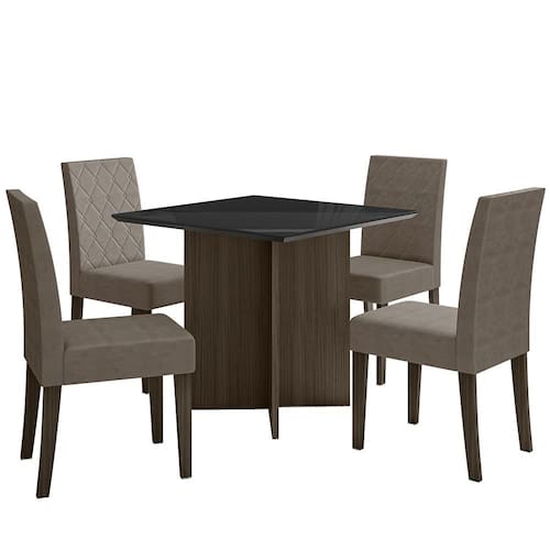 Apresentamos a você a nossa mesa de jantar com quatro cadeiras, perfeita para criar um ambiente elegante e funcional em sua casa. Com um design moderno que se adapta a qualquer estilo de decoração. Aproveite momentos especiais com sua família e amigos ao redor dessa mesa de jantar versátil e sofisticada.