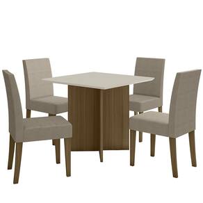 Esta elegante mesa de jantar e quatro cadeiras é o complemento perfeito para a sua sala de jantar. O design clássico e atemporal se adapta a qualquer estilo de decoração, tornando-a uma escolha versátil para qualquer lar. Transforme suas refeições em momentos especiais com este conjunto de mesa e cadeiras.