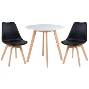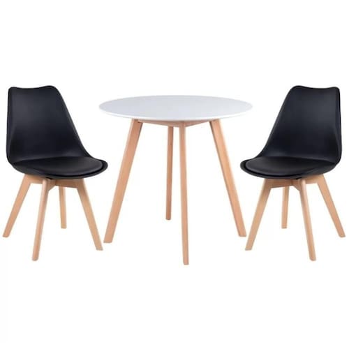 Mesa de Jantar Redonda 90cm Cor: BrancaDiâmetro: 90cm Altura: 75cm Tampo em MDF 2 Cadeiras Leda Charles Eames, Saarinen Wood com almofada Preta Assento em Polipropileno com almofada em PU Base em madeira com acabamento arredondado Largura 49cm Profundidade 43cm Altura até o assento 45cm Altura até o encosto 82cmOBS: Montagem não inclusa. Acompanha manual de instruções e chave para a montagem.