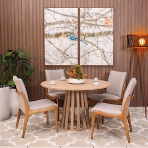 Conjunto Mesa de Jantar Redonda Gabi 120cm com 4 Cadeiras Estofada em Madeira Garbo