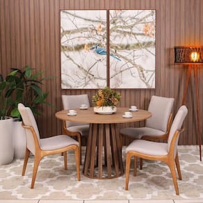 Conjunto Mesa de Jantar Redonda Gabi 120cm com 4 Cadeiras Estofada em Madeira Garbo