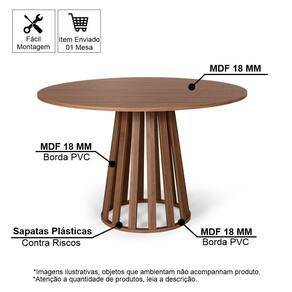 O conjunto é composto por uma mesa de jantar e 4 cadeiras, sendo que a mesa de jantar possui seu tampo e base fabricados em MDF 18 MM de altíssima qualidade em formato redondo com tamanho 120,00 CM.