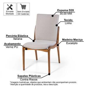 Perfeita para você que está em busca de uma cadeira confortável, seu assento é confeccionado em Linho, garantindo maior conforto e comodidade. Seu design versátil possui traços únicos que deixam a cadeira ainda mais bela e cheia de charme! Sua base confeccionada em madeira maciça proveniente de reflorestamento, garante maior resistência e durabilidade ao produto!