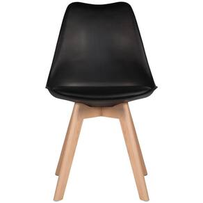 Cadeira leda: material do encosto: polipropileno - material do assento: couro pu - material dos pés: madeira natural - altura do encosto: 82 cm - altura do assento: 44 cm - largura do assento: 48 cm - profundidade do assento: 43 cm - distância entre os pés: 42 cm - peso suportado: 130 kg. Mesa redonda leda: material do tampo: mdf laqueado - material da base: madeira natural - altura: 70 cm - diâmetro do tampo: 90 cm - garantia: 3 meses.