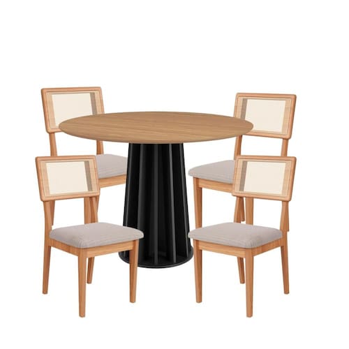 Transforme sua sala de jantar em um espaço sofisticado e acolhedor com o Kit Sala de Jantar Mesa e Cadeiras. Este conjunto combina elegância e funcionalidade: a mesa é feita de MDF de alta qualidade, com acabamento em pintura UV nas cores Freijó e Preto, um tampo com detalhes arredondados que suportam até 40 kg, além de pés ripados com sapatas plásticas que garantem estabilidade e durabilidade. As quatro cadeiras acompanham o estilo moderno e confortável, com encosto de palha sintética e assentos macios de espuma D28 revestidos em tecido bege. Cada cadeira suporta até 120 kg, oferecendo conforto e resistência. É o toque de sofisticação que sua sala merece, aliando design moderno e robustez!
