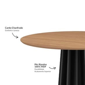 CARACTERÍSTICAS TÉCNICAS DA MESA: - Produzido em MDF de 18 e 25 mm - Acabamento em Pintura UV na cor Freijó e Preto - Detalhes no Tampo com Cantos Arredondados - Pés Ripados em MDF com Sapatas Plástica - Suporta até 40 Kg no Tampo