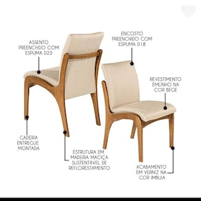 CARACTERÍSTICAS TÉCNICAS CADEIRA ESTOFADA LISBOA: - Produzida em Madeira Maciça - Acabamento em Verniz na cor Imbuia - Assento Estofado Preenchido com Espuma D23 - Encosto Estofado Preenchido com Espuma D18 - Revestimento em Tecido Linho na cor Bege M58 - Cadeira Entregue Montada