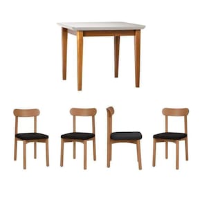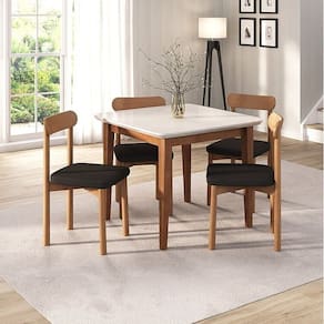 Kit Mesa de Jantar Tangará 95cm e 4 Cadeiras Pitanga Cabecasa Madeiramadeira Caramelo/Offwhite/Preto - Marrom