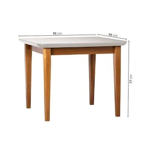Informação Complementar: 1x Mesa de Jantar Quadrada 4 Lugares 95cm Tampo MDF e Vidro Tangará Caramelo/Off White