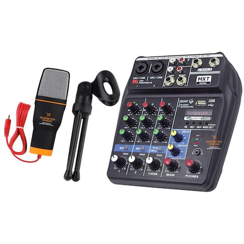 Kit Mesa de Som 4 Canais e Microfone de Mesa Condensador