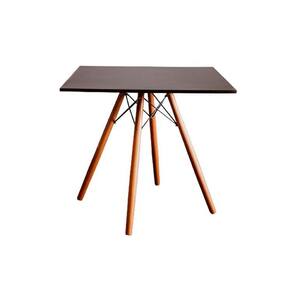 Possui tampo quadrado em mdf, estrutura em ferro maciço e pés em madeira pinus que são envernizados e acompanham sapatas de regulagem.