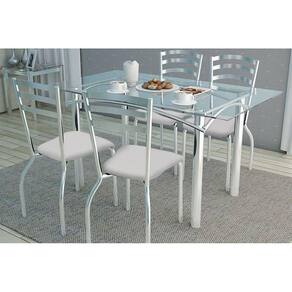 Conjunto: Mesa Sala Jantar Elba C/ Tampo Vidro 120cm + 4 Cadeiras Portugal Cromado/courano Branco - Kappesberg