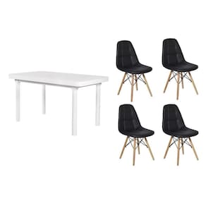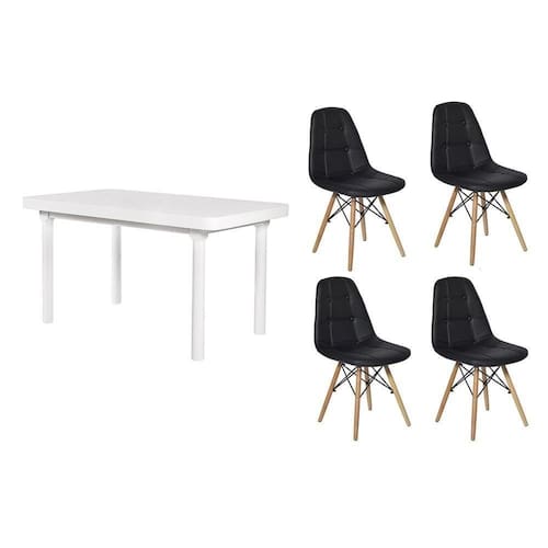 Kit Mesa Jantar França 110x80 Branca com 4 Cadeiras Charles Eames Botonê Preta
