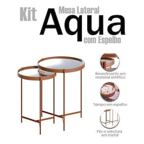 Mesa Lateral Aqua Pequena com Espelho Cobre - Imcal