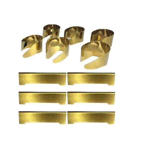 Este lindissimo kit mesa posta descanso de talheres e porta guardanapos fineza irá agregar elegância na sua mesa posta Os itens são produzidos em aço inox de alto padrão. Este kit serve até 6 pessoas, o acabamento dos descansos de talheres é escovado, portanto é considerado dourado fosco. O acabamento dos porta guardanapos de tecido é polido, portanto é considerado dourado brilhante. O dourado das peças fineza não são pinturas e sim são adquiridos através de uma nova tecnologia chamada de pvd deposição física de vapor onde o nitreto de titânio adere no inox, dando o tom dourado nas peças. Portanto, os produtos fineza são produtos de qualidades únicas e exclusivas, pois o dourado aumenta a durabilidade do inox evitando mais ainda o enferrujamento e desgaste das peças. O dourado não sai e não descasca com o passar do tempo desde que as recomendações abaixo sejam seguidas