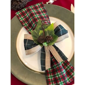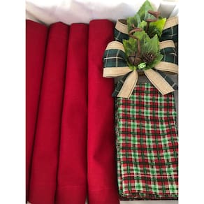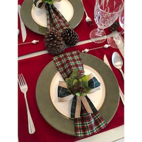 Kit Mesa Posta Jogo Americano 04Lugares Natal Reveillon Deco Estampas.: Jogo Americano Vermelho + Guardanapo Xadrez + Porta Guardanapo Verde Rustico Kit Mesa Posta