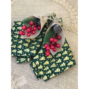 Kit Mesa Posta Jogo Americano Completo Decor Natal 6 Lugares Modelos: Jogo Americano Off + Guardanapo Verde Árvore + Pota Guardanapo Vermelho Kit Mesa Posta