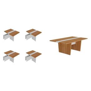 Kit Mesa de Reunião P/escritório com 4 Módulos P/extensão Caixa de Tomada e Tampo em Tamburato 50mm