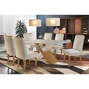 Sala de Jantar Completa Imperatriz c/ Tampo Madeirado c/ Vidro Canto Reto 180cm + 6 Cadeiras Jade Imbuia/Veludo Creme - Rufato Abaixo segue os produtos do KIT: Sala de Jantar Completa Imperatriz c/ Tampo Madeirado c/ Vidro Canto Reto 180cm + 6 Cadeiras Jade Imbuia/Veludo Creme - Rufato Mesa de Sala Jantar Imperatriz + Tampo Madeirado Vidro Reto 180x90cm Imbuia/Off White - Rufato