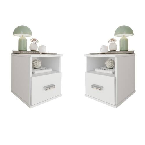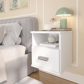 Transforme seu espaço com praticidade e sofisticação! O Kit com 2 Mesas de Cabeceira Suspensa Balli com Gaveta Oculta traz o que há de melhor em design moderno e segurança, unindo elegância e funcionalidade em uma única peça.