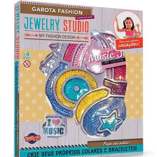Kit Micangas Jewelry Studio - Toyng Crie seus próprios colares e braceletes com esse maravilhoso kit miçangas. É o brinquedo perfeito para brincar de faça você mesmo. As crianças poderão montar e criar muitas peças diferentes, cada uma com o seu estilo Não recomendável para menores de 3 anos por conter peças pequenas que podem ser engolidas. Registro: 004589/2018 Medidas aproximadas do produto - Comprimento: 27 cm - Altura: 32 cm - Largura: 4 cm - Peso: 300 g Ean: 7899871610837