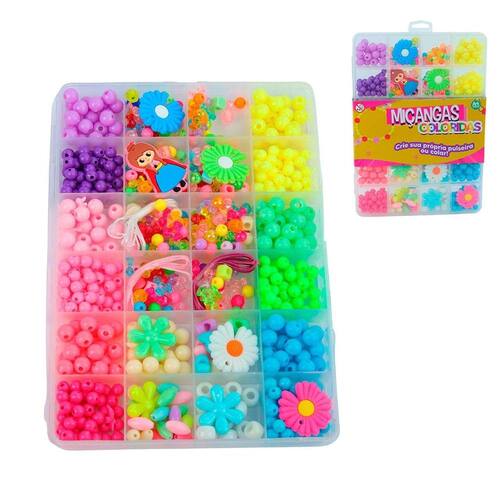 KIT Miçangas Joalheria com Organizador - Ideal para montar bijuterias artesanais infantis, como colares, pulseiras, gargantilhas e até tornozeleiras;\n- Acompanha um organizador e uma variedades de miçangas de plástico e linhas;\nEspecificações:\nMarca : ARK BRASIL\nTipo de material : Plástico\nCores ou Estampa : Colorido\nDimensões do Produto : 19 X 13,5 X 2 CM\nDimensões da Embalagem : 19 X 13,5 X 2 CM\nPeso Bruto (Gramas) : 0.191 Marca: Não Informado