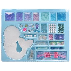 CONTEÚDO DA EMBALAGEM: Miçangas em diversas formas e cores, argolas, pingentes, 6 cordões e 1 caixa organizadora em formato de sereia Peso aproximado das miçangas: 85g
