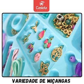 Deixe sua imaginação fluir e crie peças maravilhosas com o Kit de Miçangas Castela Adquira o seu agora e comece a produzir bijuterias e artesanato incríveis.